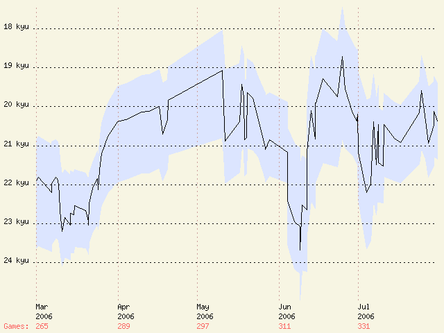 update of my online go ranking. At the time, I was 22 kyu. Since then, I've been enjoying playing face-to-face go more and on-line go less. I had almost entirely stopped playing on-line until I discovered I could now play against a